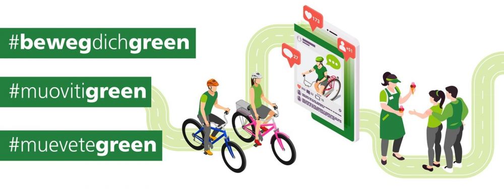 - taggate il profilo di Green Mobility. Su facebook: https://www.facebook.com/greenmobilitysuedtirol; su Instagram @green.mobility